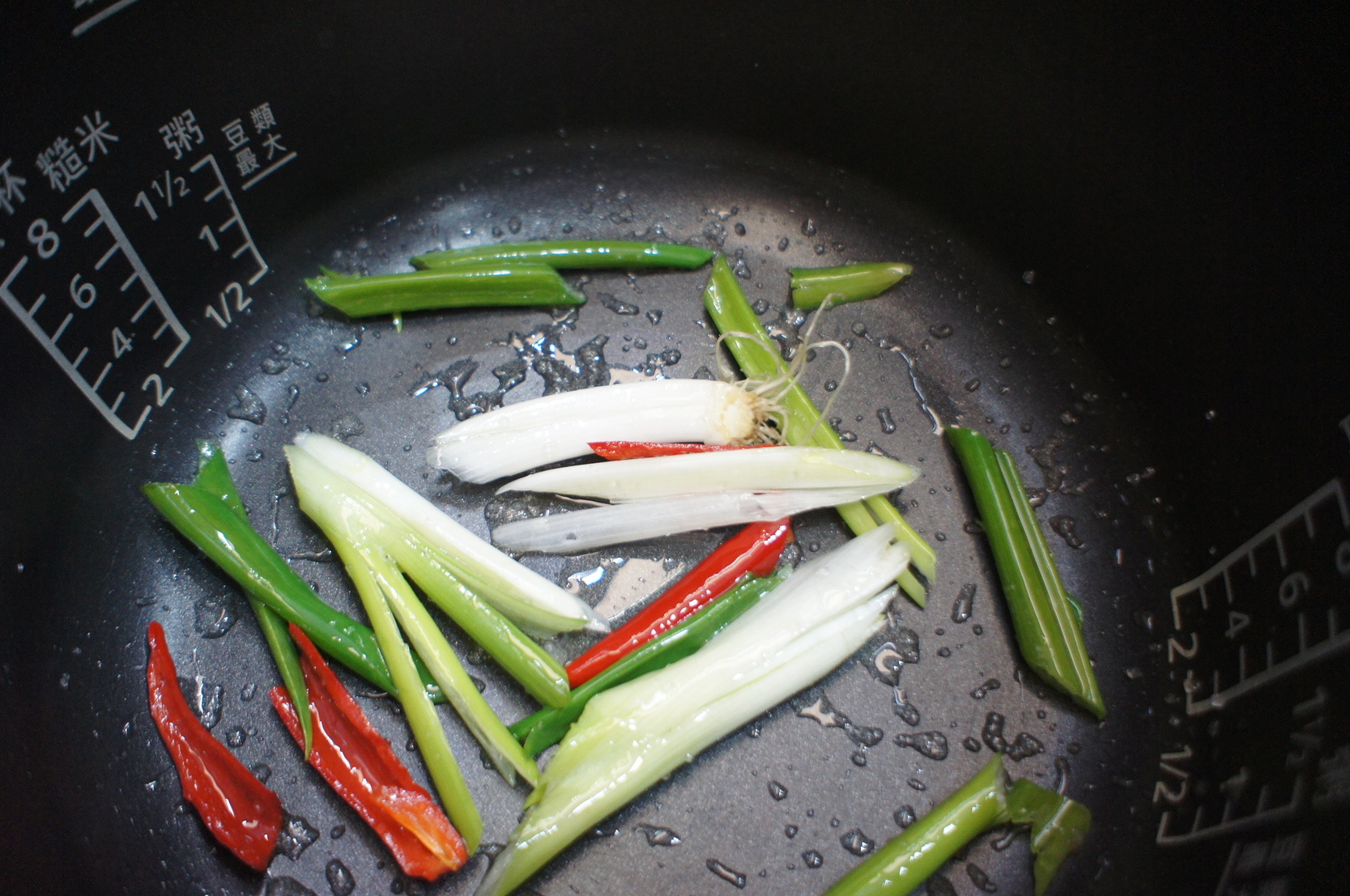 設定【輔助烹調】倒入沙拉油熱一下後,加入蔥、辣椒爆香,拌炒約10分鐘