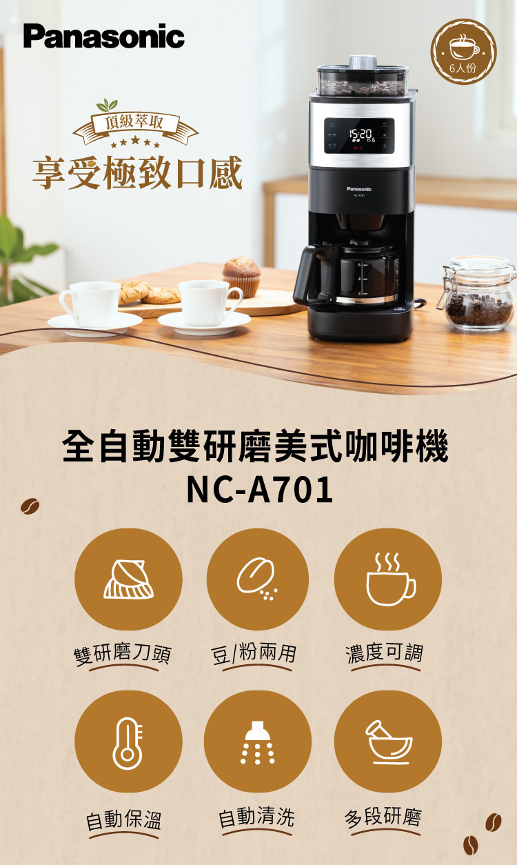 • Panasonic NC-A701 全自動 雙研磨美式 咖啡機